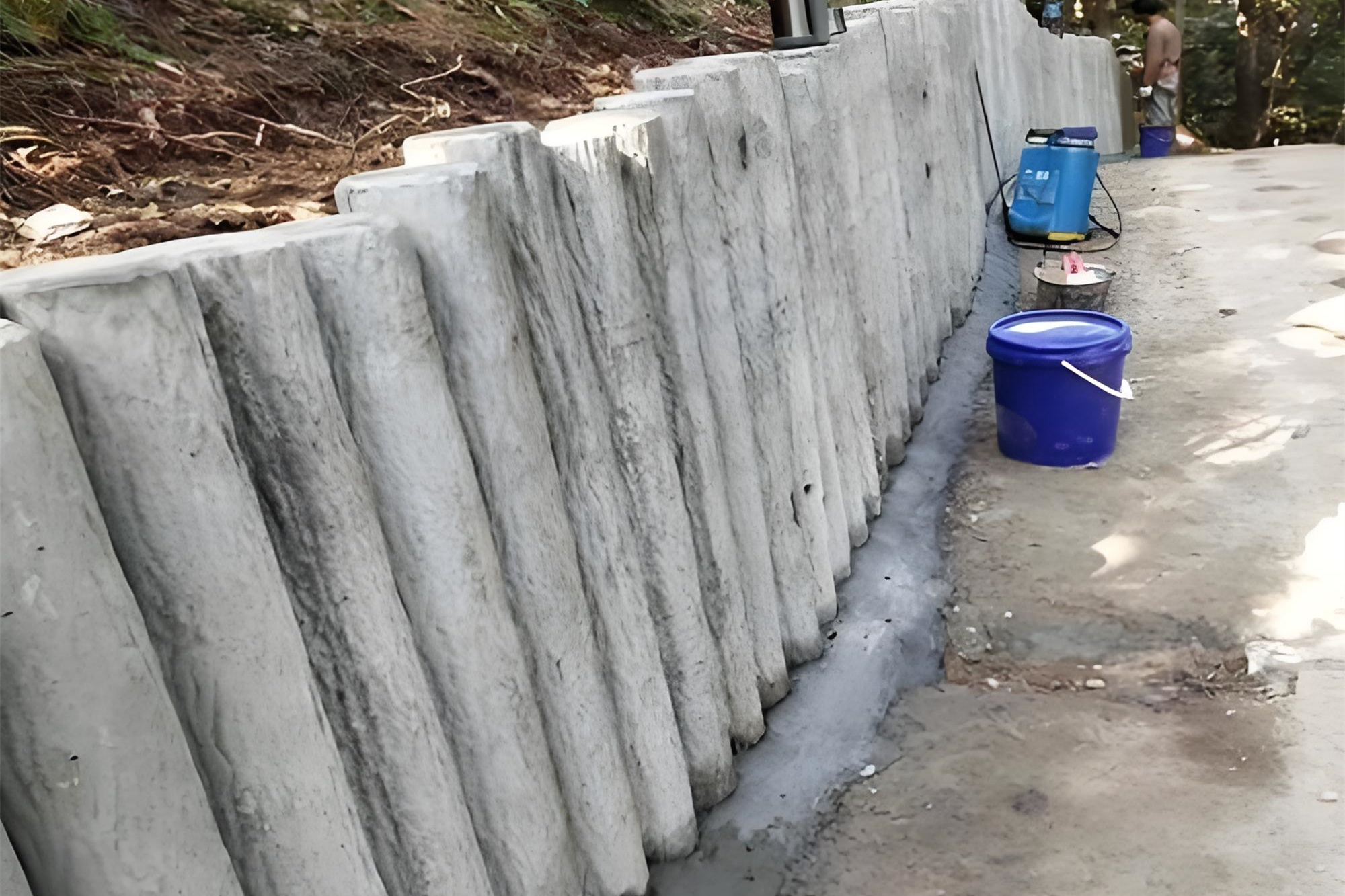 - 仿木樁批發廠家泓樺錦嘉-仿木樁施工能抗洪水沖擊嗎?