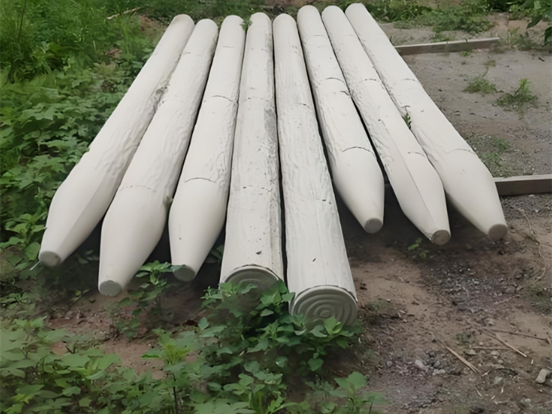 在水下和泥土交界的 “干濕交替區”,木樁腐蝕速度最快。但水泥仿木樁就不一樣,哪怕是有輕微污染的河水,比如含少量生活污水,也不會被腐蝕,因為混凝土不會被微生物分解,也不會和污水里的有機物發生反應。再看鹽堿地或者沿海區域,這些地方的土壤、海水里含鹽量高,對金屬、木頭的腐蝕特別強,普通鋼管半年就會生銹,天然木樁 1 年左右就會腐爛。但水泥仿木樁在這種環境下表現很穩定,